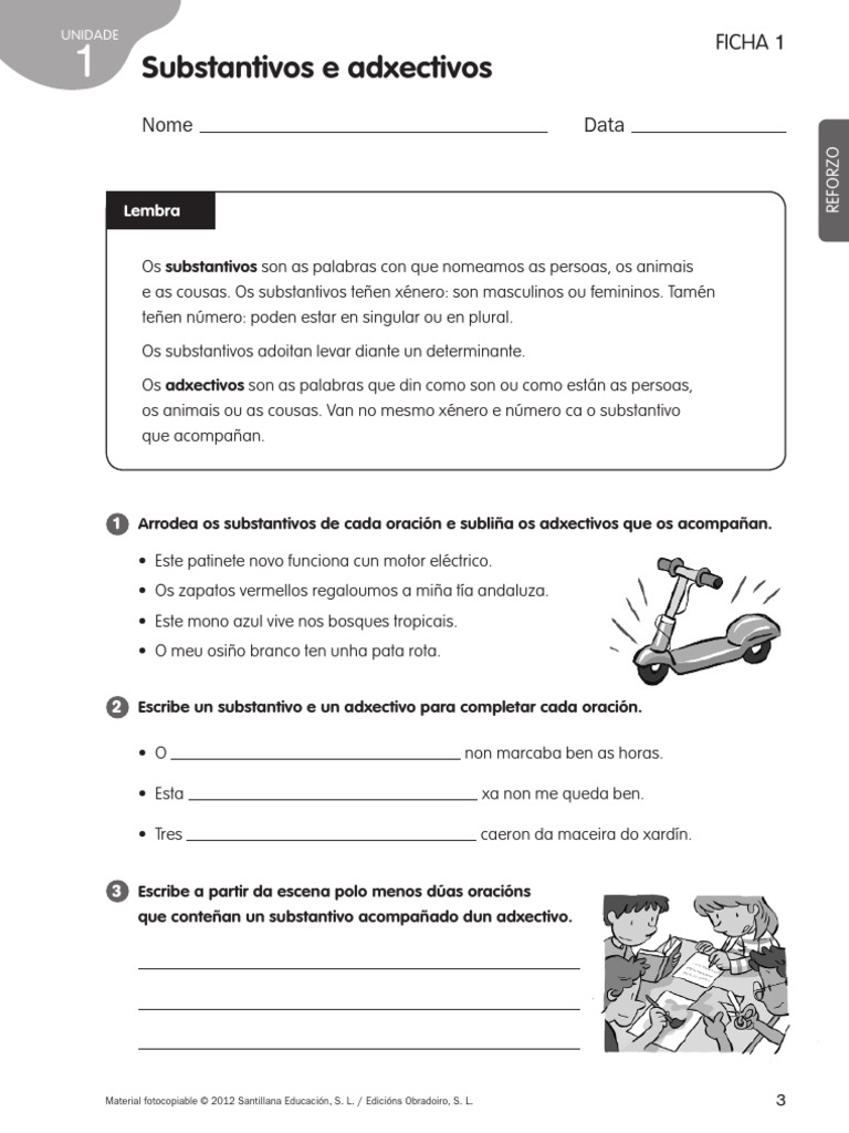 Lingua Galega: en lingua imos traballar gramática, máis en concreto a gramática do tema 6, que é o xénero do substantivo e o adxectivo.
